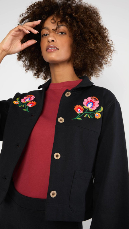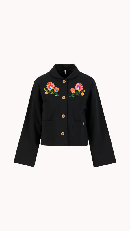 Zwart Blutsgeschwister jasje met geborduurd detail aan de voorzijde.