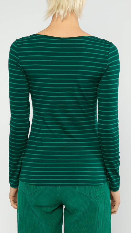 Licht getailleerd model met een goeie boothals en lange mouwen.