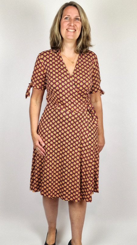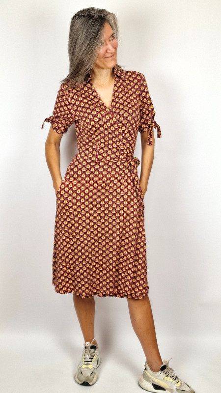 Brique Circus wikkeljurk in soepel stretchy materiaal.