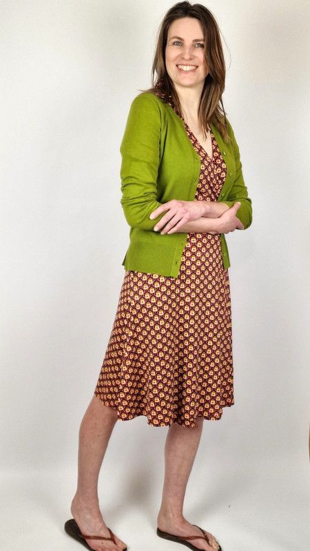 Het Seasalt vestje Vanessa papaya staat prachtig op deze jurk (foto 2).