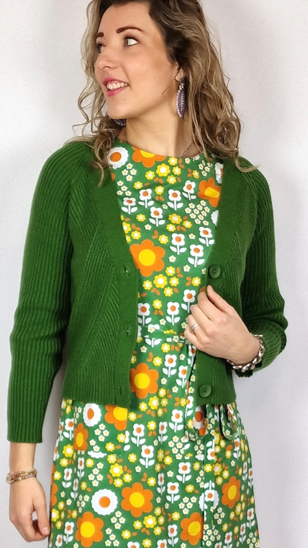 Cissi och Selma jurkje in groen, oranje, geel en wit.