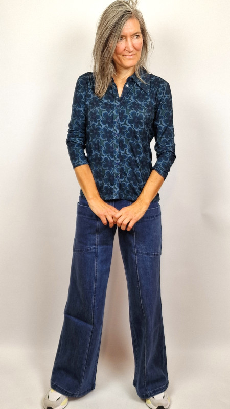 Petrol Heart blouse met print in verschillende tinten blauw.