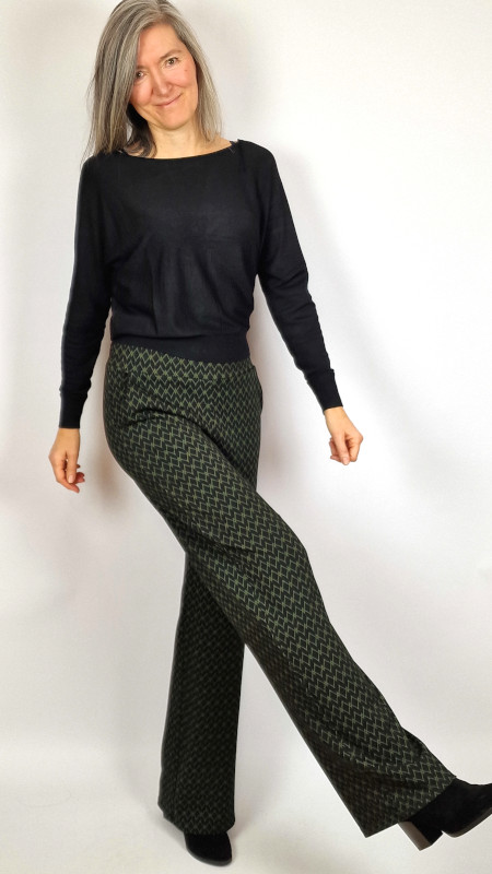Ich Jane broek met olijfgroene print in grafisch motief.
