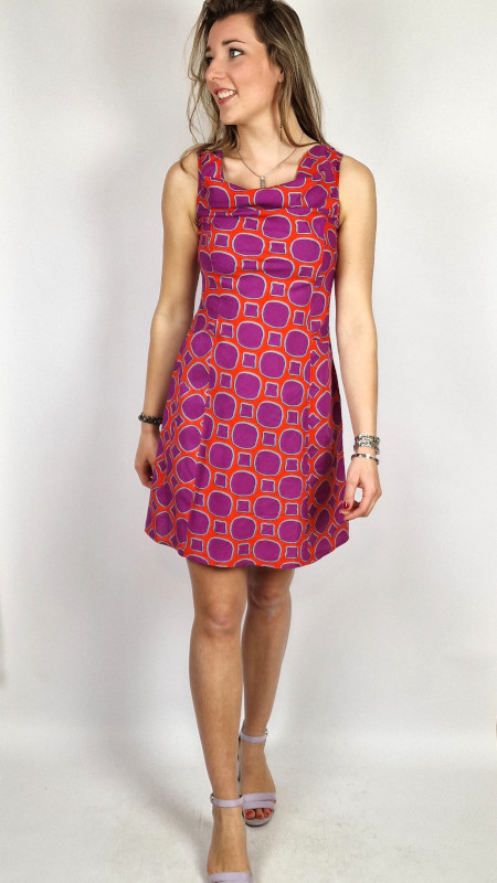 Heel grappig genaaid jurkje met een watervalhals en zakken op het voorpand.