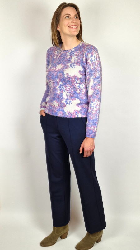 Het truitje is er ook in een andere kleurstelling: trui Telma Basman drage.