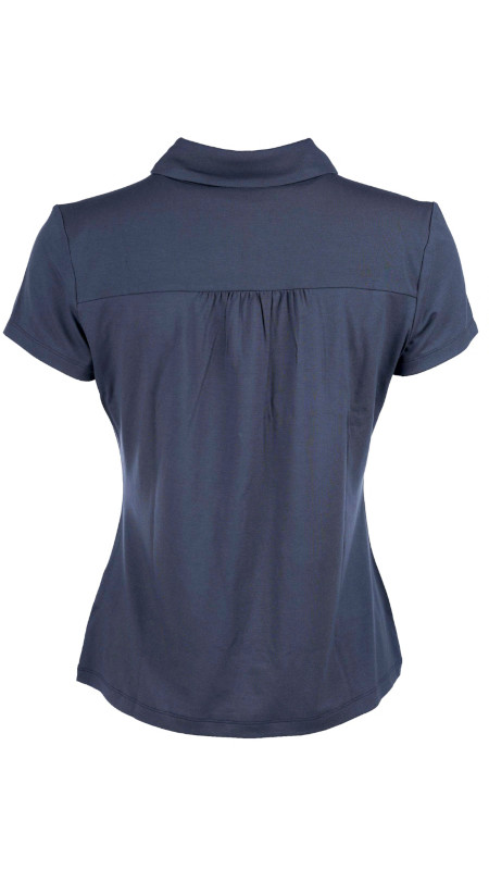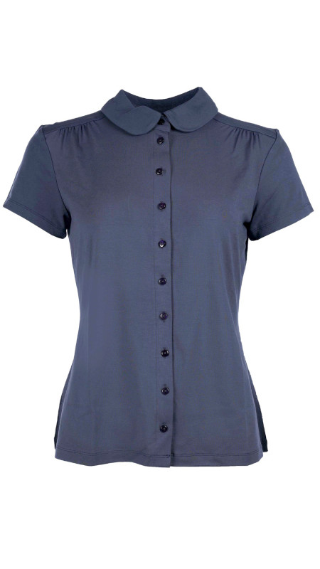 Effen donkerblauwe Lykka du Nord blouse met rond kraagje.