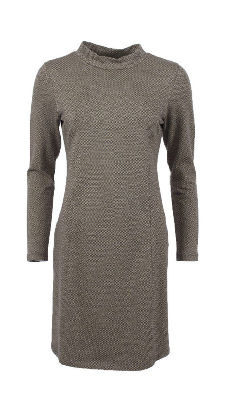 Olijfgroene Lykka du Nord jurk met opstaande hals (turtle-neck).