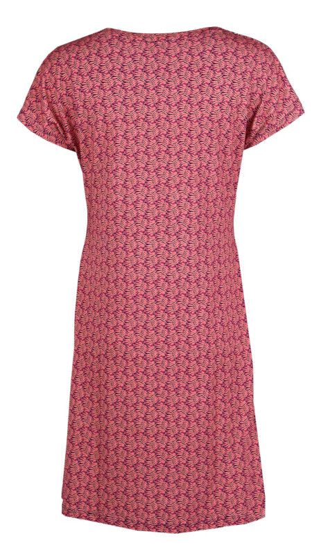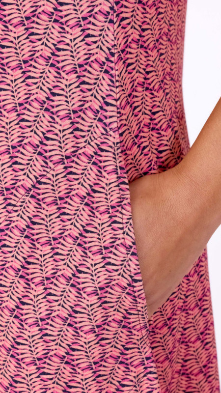 Lykka du Nord zomerjurkje met prachtige print in twee tinten roze op een donkerblauwe basis.