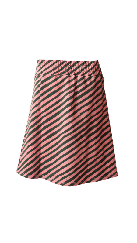 Mooi Vrolijk rokje met diagonale streepprint in donkergroen en oud-roze.