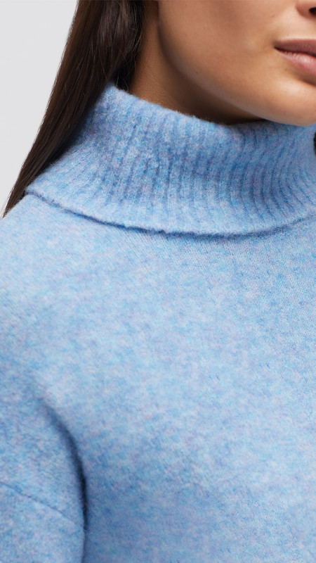 Lichtblauwe wollen coltrui in een prachtige gemêleerde kleur blauw.