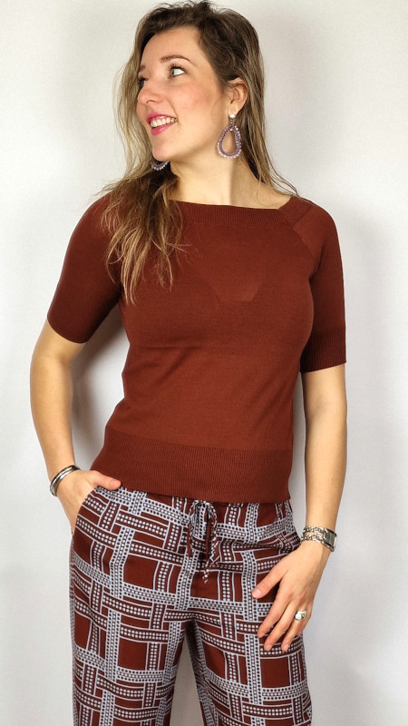 Bruine Nice Things top in een dunne mix van katoen en viscose.