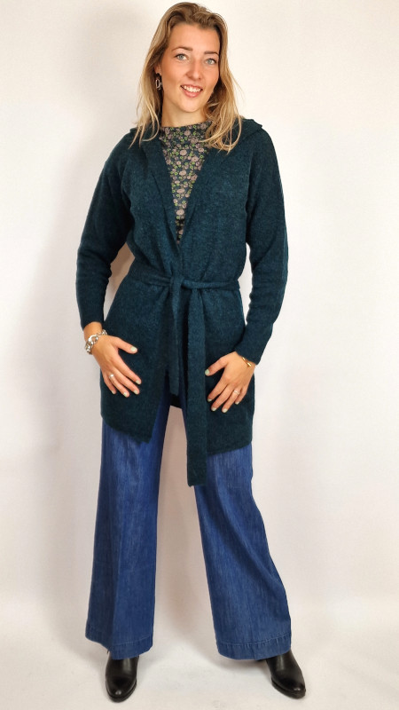 Dennengroen wollen Nice Things vest met kraagje en strikceintuur.