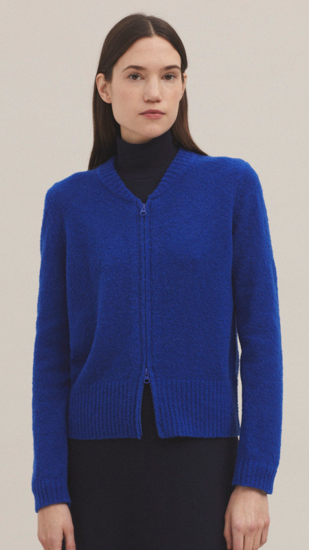 Boucléwollen kobaltblauw Nice Things vest met ritssluiting.