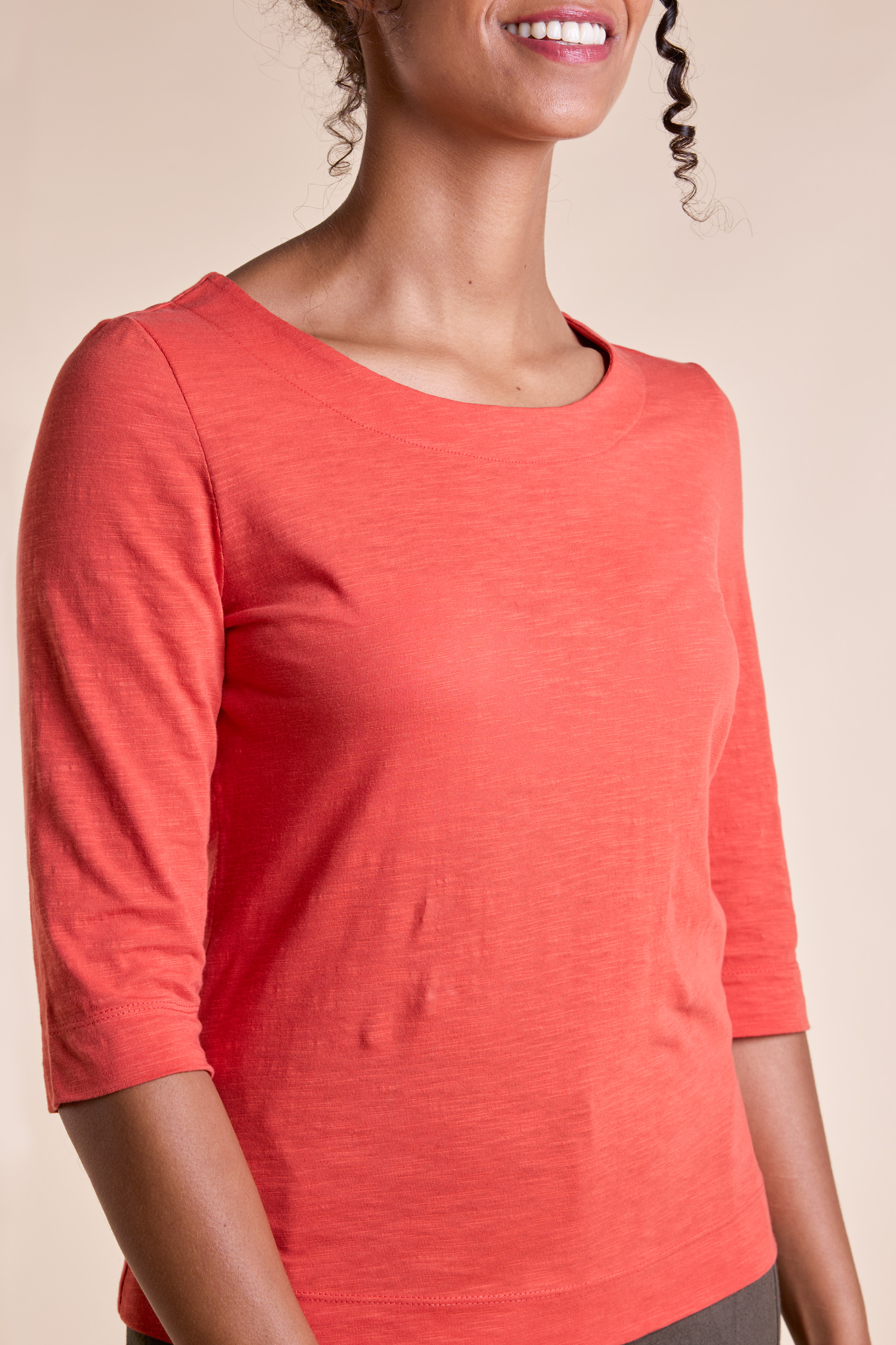 Oranje Nomads shirt in een getailleerd model met ronde hals en mouwen tot net over de elleboog.