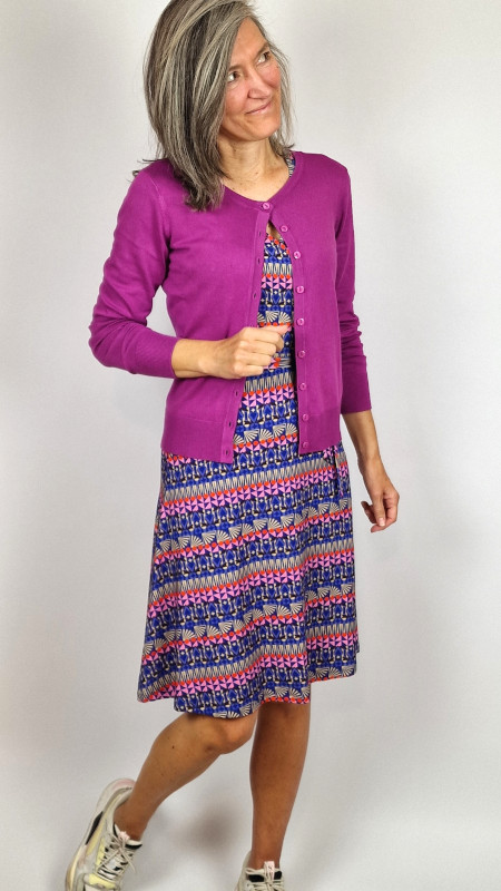 Leuk in combinatie met de vesten Karmu violet en kobalt.