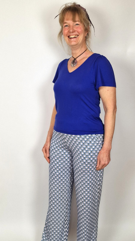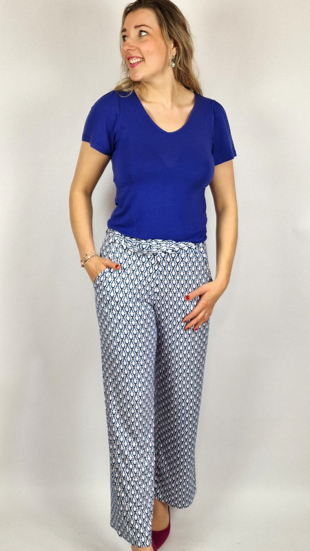 Kobaltblauw Princesse nomade shirt met V-hals en korte vlindermouwen.
