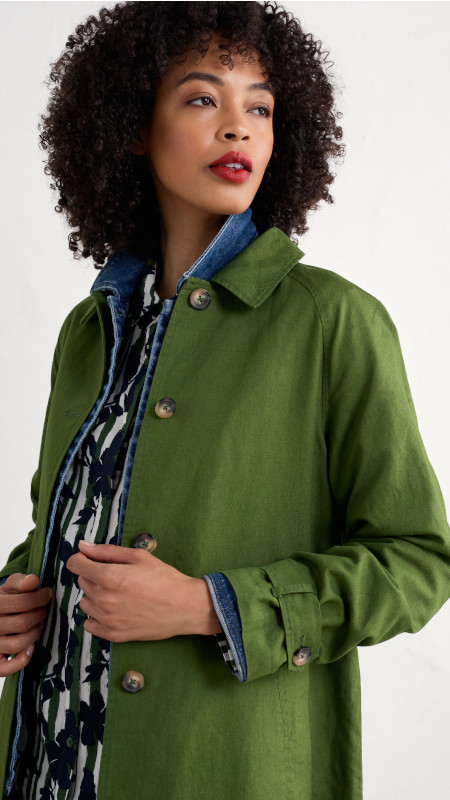 Mosgroene Seasalt jas in mix van katoen en linnen.