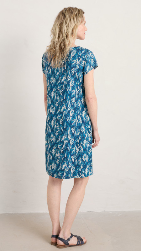 Mooie Seasalt jurk in min of meer recht model; de jurk loopt heel licht gerend uit.
