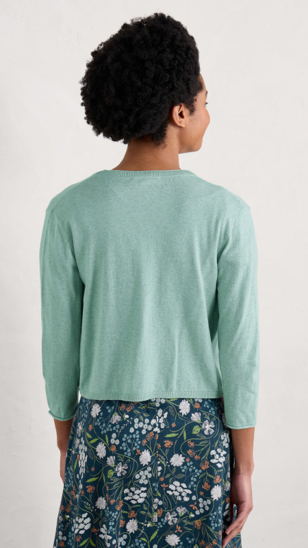 Prachtig vestje tot boven de taille. Het heeft driekwart mouwen die zijn afgewerkt met een rolzoompje.
