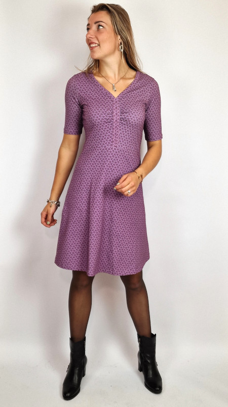Je kunt de jurk lang doordragen met een bijpassend shirt eronder: shirt Malin lavender (foto 3).