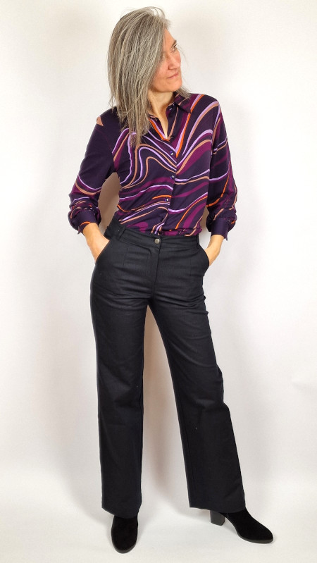 Op foto 3 een combinatie met de broek Nika purple van Ich Jane. Ook heel mooi op de donkerpaarse corduroy broek Lulu.