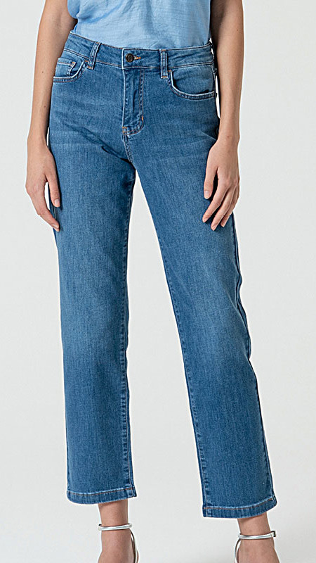 Blauwe Surkana spijkerbroek in aansluitend model tot boven de enkel.