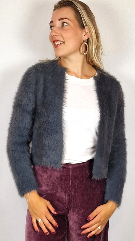 Superleuk jasje/vest in grijs nepbont, heel zacht en comfortabel!