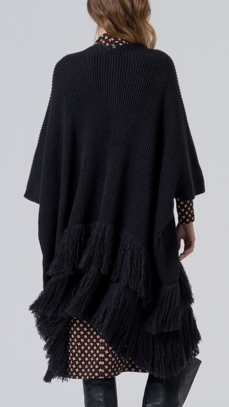 Zwarte Surkana poncho voor de frissere dagen, het hele jaar rond.