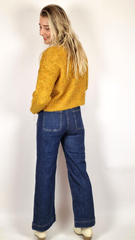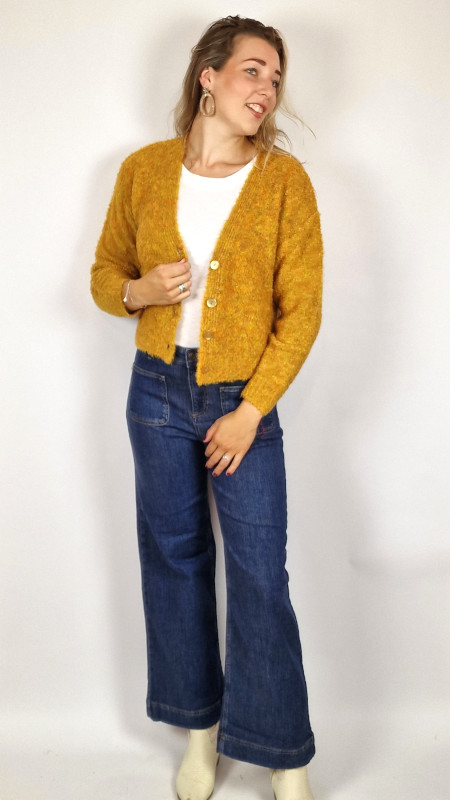 Recht model met een V-hals in prachtige gemêleerde tint geel.