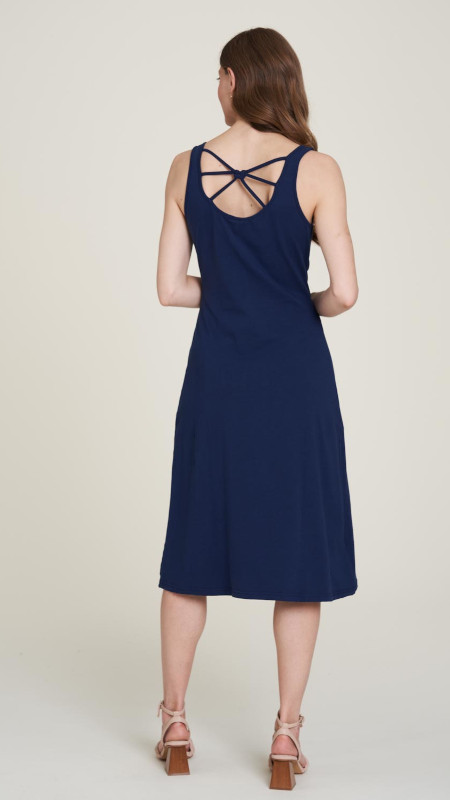 Dit is een mouwloos model met speelse bandjes op de rug.