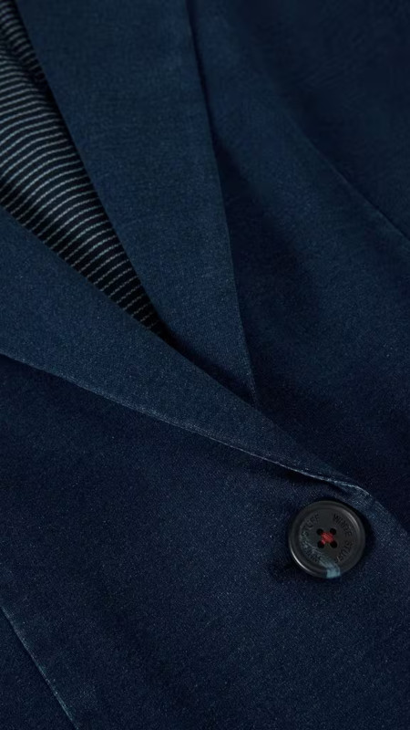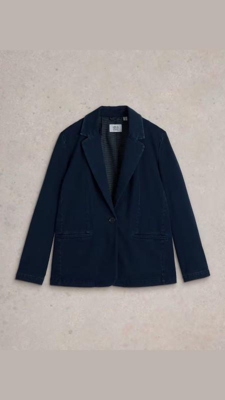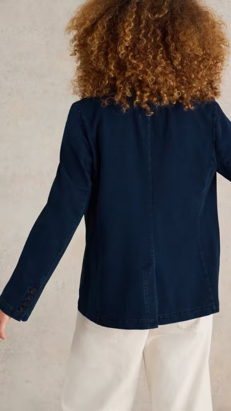 De binnenzijde van het jasje is blauw wit gestreept, leuk als je de mouwen omslaat.