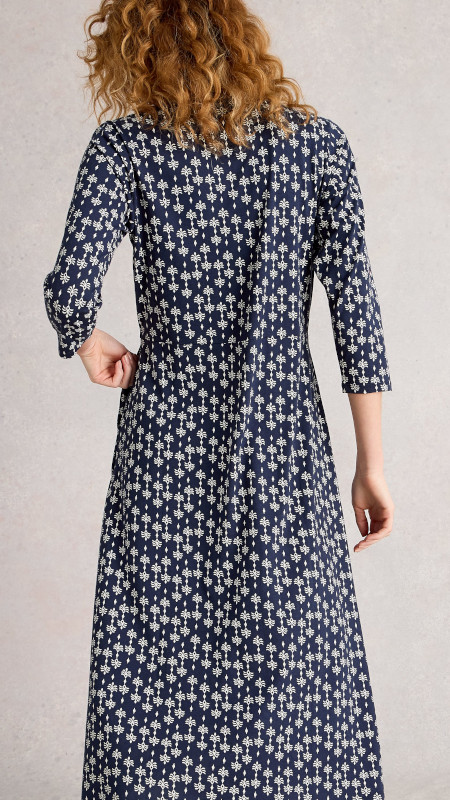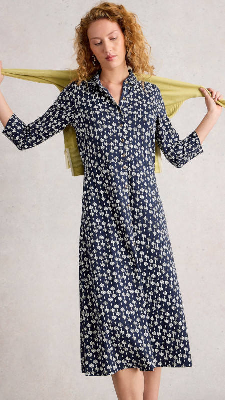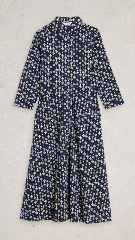 Donkerblauwe White Stuff shirt dress met print in wit.