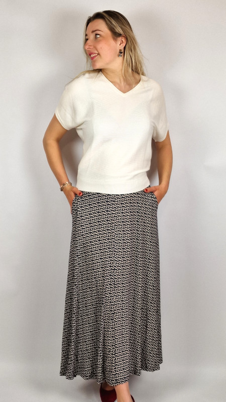 Op foto 1 een combinatie met de maxirok Jada van White Stuff.