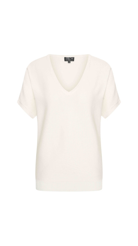 Offwhite bamboe ZILCH top in vleermuismodel met aangeknipte korte mouwen.