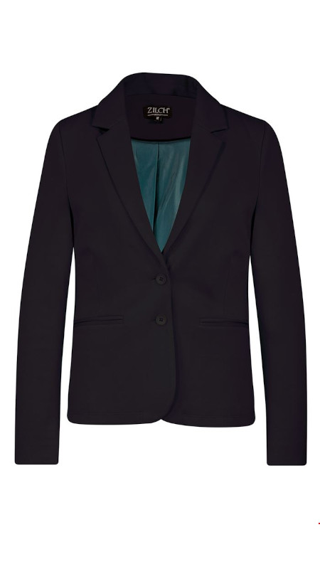 Het jasje heeft figuurnaden voor en achter, twee knopen en zakjes.