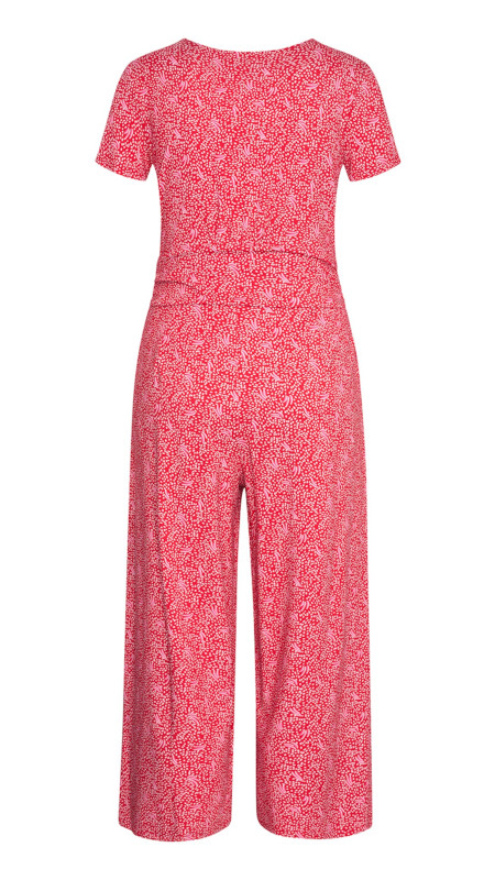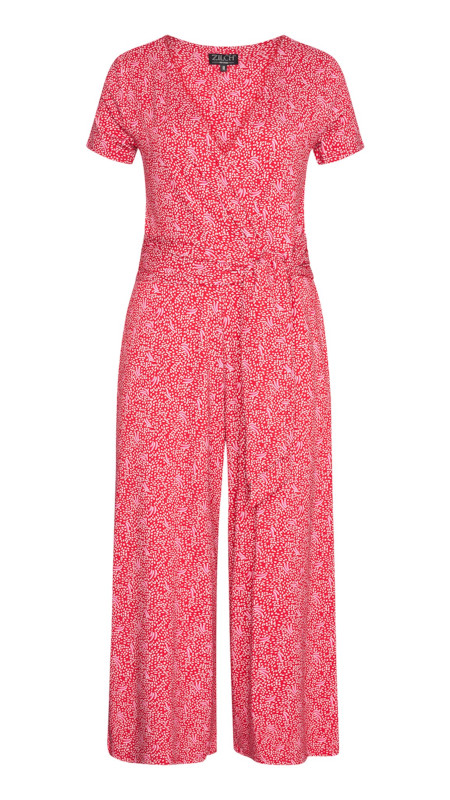 Rode ZILCH jumpsuit met print in beige en een detail zachtroze.