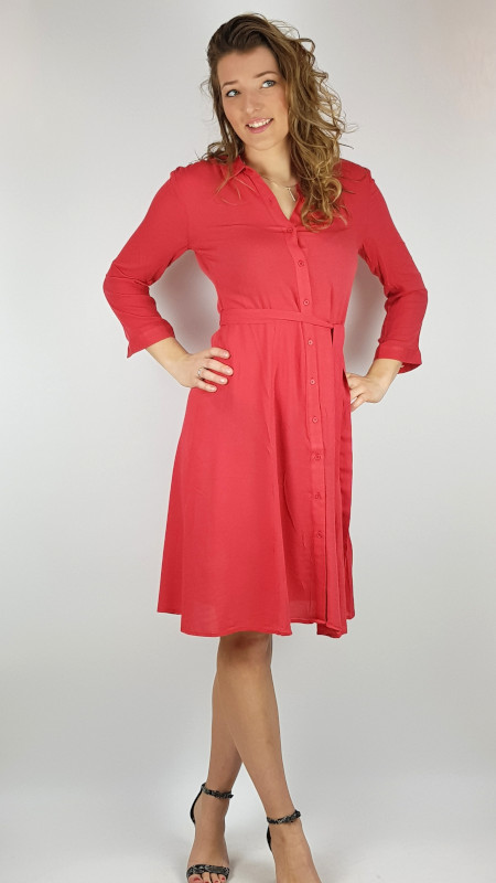 Framboosrode ZILCH doorknoopjurk in heerlijk luchtige stof.