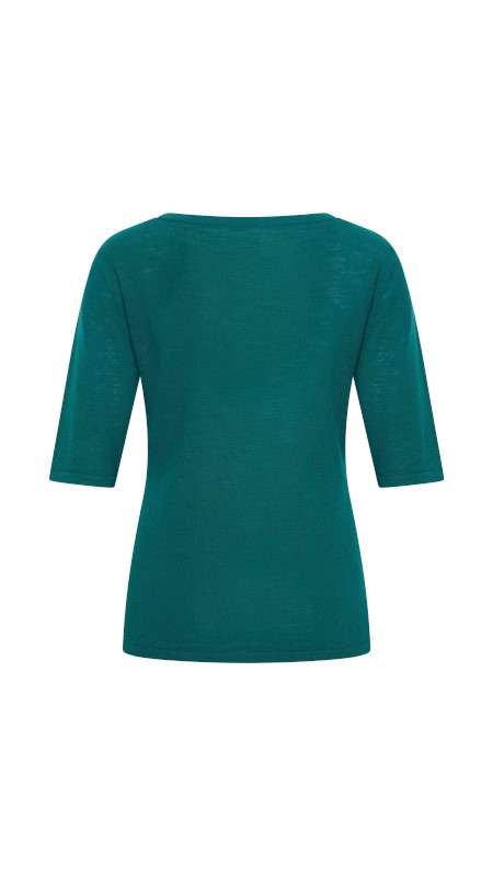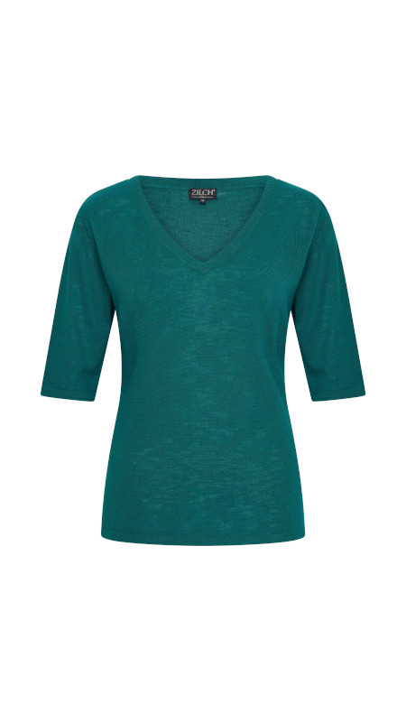 Donker smaragdgroene ZILCH top in recht model met V-hals en mouwen tot de elleboog.