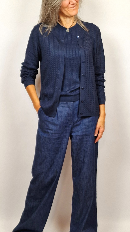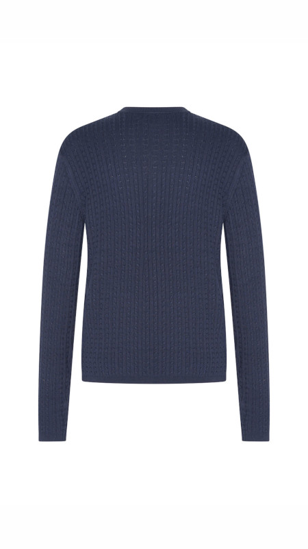Donkerblauw ZILCH vest in prachtig breisel met subtiel kabelpatroon.