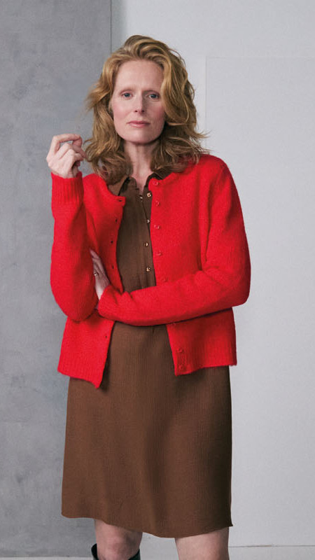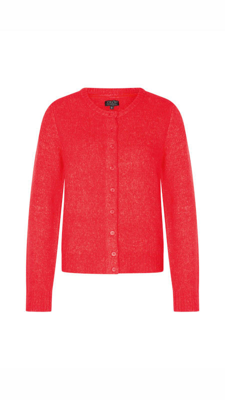Met een ronde hals en knoopsluiting in de kleur van het vest.